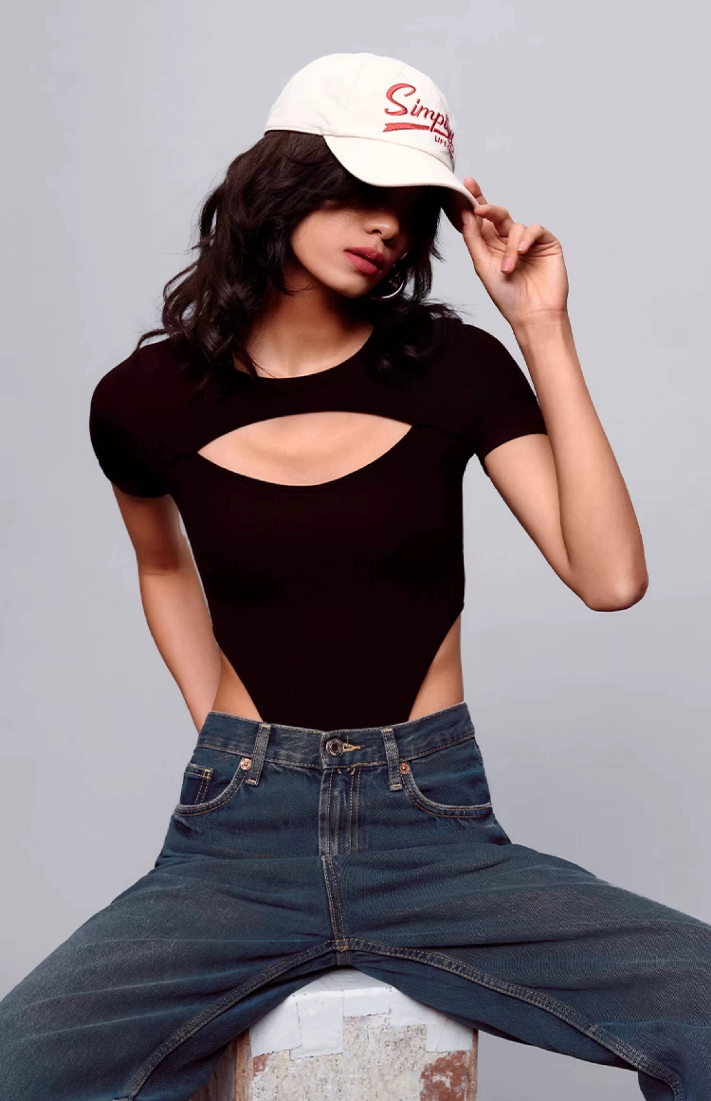 日常化穿搭中,内衣外穿的「露、透、叠」三法则正在改写实用美学。解开两颗纽扣的印花衬衫下若隐若现的bralette,为甜美造型注入慵懒性感;黑色胸衣外罩同色系黑纱的娜扎式穿法,用朦胧感平衡暴露的尺度;而运动内衣与牛仔套装的组合,则让健身装备无缝衔接街头时尚。MIU MIU本季更将胸衣直接外穿或与针织衫叠搭,在遮掩与袒露间制造迷人张力,恰如设计师所言:「服装应当成为探索『女性是什么』的媒介。」